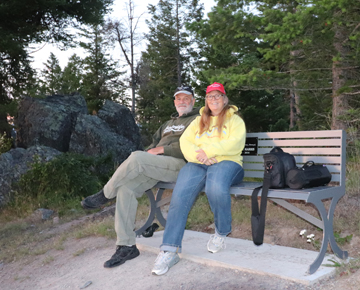 The other camp hosts had advised us that the best spot to view the fireworks was the big open field in the middle of the campground. Mike, wanting to avoid the congestion, suggested we drive to the top of the hill (halfway to the campground) and then walk to the high point where there was a bench. So we headed up there. The lake was beautiful, and we did see fireworks all around, and across the lake. But the ones across the lake were too small, and the ones close by were inhibited by trees. About 10:30 we decided to move on down into the campground.