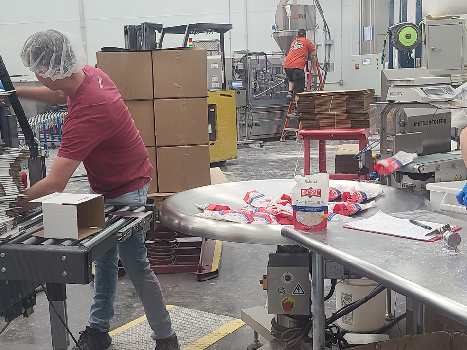 On completion of the tour, we realized that Redmond’s Salt is the transported in 2000 pound bags to Heber City. It goes there for packaging and distribution. The Redmond’s Life building is 2 miles from where we are staying this summer in the RV. Of course we had to schedule a visit and tour there. I kind of forgot about it for a few weeks. Then, as I was awaiting the arrival of my lifetime friends John and Donna Brett I started writing this post. Suddenly, I remembered the packaging plant and associated health food store. I decided they would love to join us on the tour. I didn’t waste any time and scheduled the tour scheduled for two days later, last Wednesday.