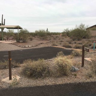 Rated as: Above Average. This park is located halfway between Tucson and Phoenix. Like all Arizona State Parks it is in a beautiful location and very well maintained, The property is a little remote, but Casa Grande is 25 minutes north and Marana 25 minutes south, for groceries and large “box stores”.  It is right on the Highway, I10, so it is east to find and access. The roads are asphalt, easy to maneuver. Site are very spread out,  have a concrete patio, picnic table and fire ring.  The restroom-shower house is clean with ample hot water. Due to water problems, water to each site is currently shut off.  Overall, the park is very nice, well laid out, well maintained, and very reasonable priced. There is a 14 day camping limit.  We would stay there again. Rated as: Above Average.