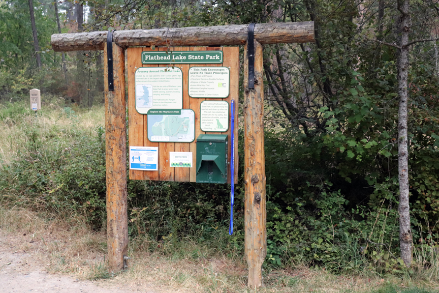 Rated as Average. One of five state Parks on Flathead lake. Wayfarers’ has a campground, shower house with flush toilets, 2 pavilions, a boat ramp, dock, and boat pump station, a large day use area, RV dump station, and a beach. Each site is treed, with grass, fire pit, and a picnic table. The restrooms are very clean and well maintained. All the roads are paved, while the camp sites are level dirt. It is on the shore of Flathead Lake which has a lot of beaches and water activities. The campground is extremely busy and reservations are required to ensure a spot. There are no hookups, but running water throughout the campground. Rated as Average. We would stay here again.