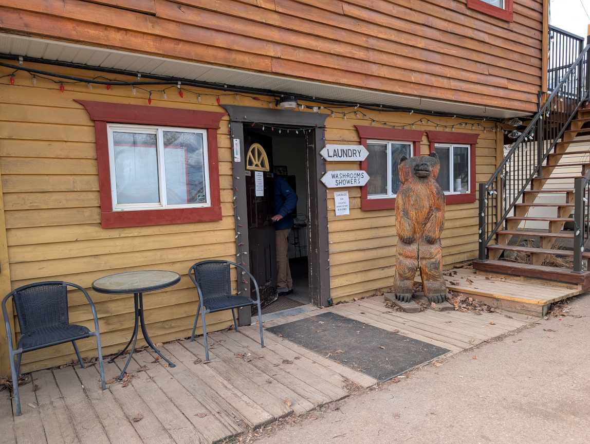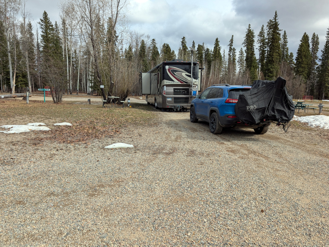 Triple G RV Park is located in Dawson Creek, British Columbia, Canada. . Our site was gravel that barely fit our 40 ft motorhome with tow vehicle. The sites are not level so we had to request a move. With trial and error we made the next site work. The park has a restaurant and gift shop. Interior roads are tight, not well marked, full of potholes and all gravel. There are a mix of back in and pull thru sites with little room between them. They are open year around, but only have 30 amp power, with no water or sewer during off season. Water is available from the laundry room hose. They charge extra for showers, seems unfair since they have the water shut off at the sites. The Resort is not very well maintained, showing it’s age and needs some updating. The bathrooms were clean, but not well maintained with peeling paint, loose doors . Our stay at Spanish Trails RV Park was unremarkable. It’s the only RV in Dawson City, but we would by pass it, stopping before or after Dawson Creek. Rated as Below Average.